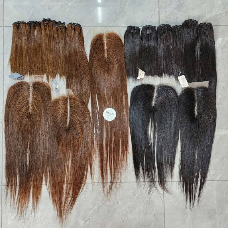 GUGU HAIR is one of the most trusted hair factories in Vietnam, specializing in premium Vietnamese raw human hair. Our product range covers everything you need: Weft Hair with Closure/Frontal, Human Hair Wigs, and hair extensions types such as Clip-in, Tape-in, Tip, and Ponytail.